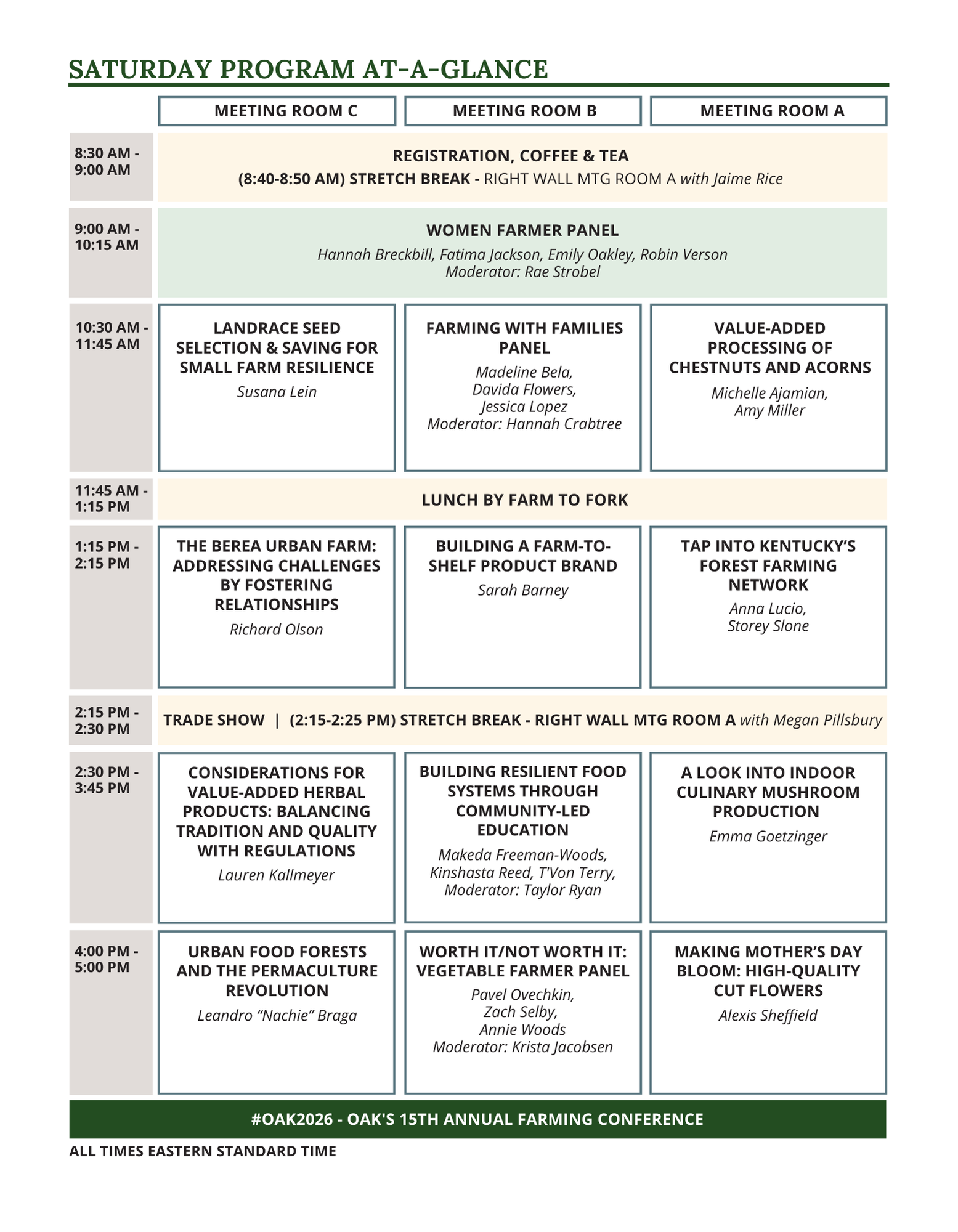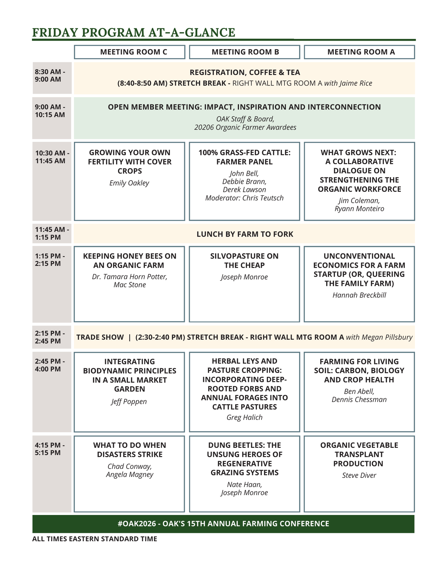 Welcome to the "Agenda At-A-Glance" for the 15th Annual OAK Conference, Cultivating Connections: Growing Organic Together for 15 Years. We look forward to seeing you at the conference!